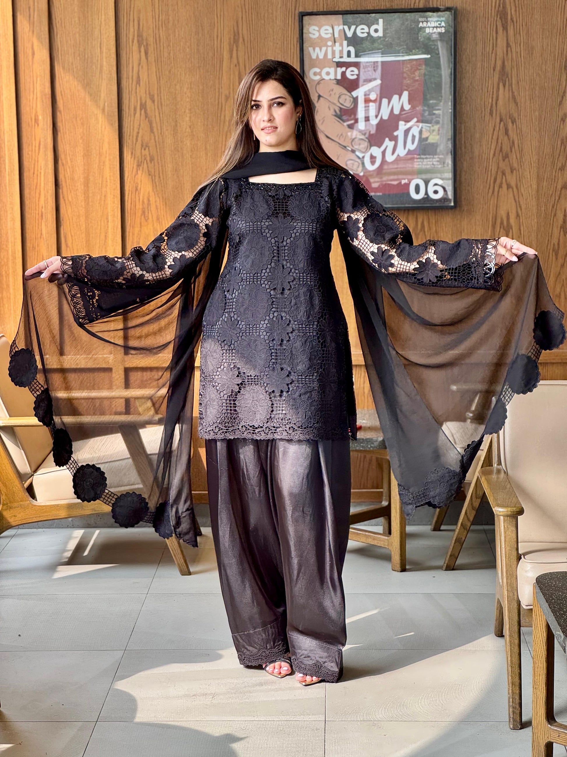 Black Laser Cut Dress (STITCHED)