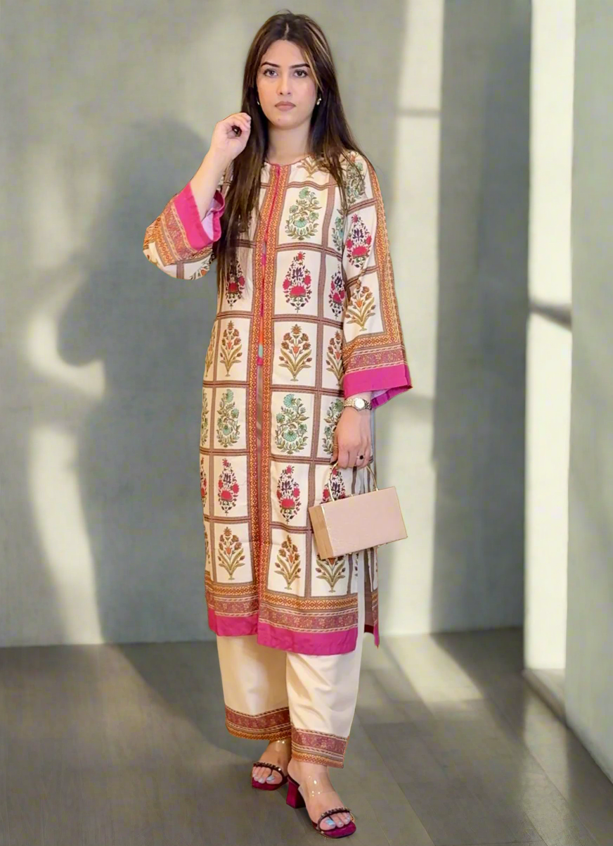 Off-White Pink Blocks 3-Piece GOWN (UNSTITCHED)