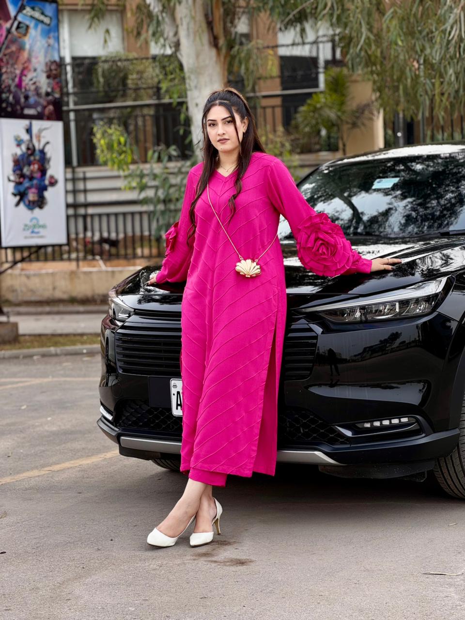 Pink 3D Flower Shirt and Trouser (STITCHED)